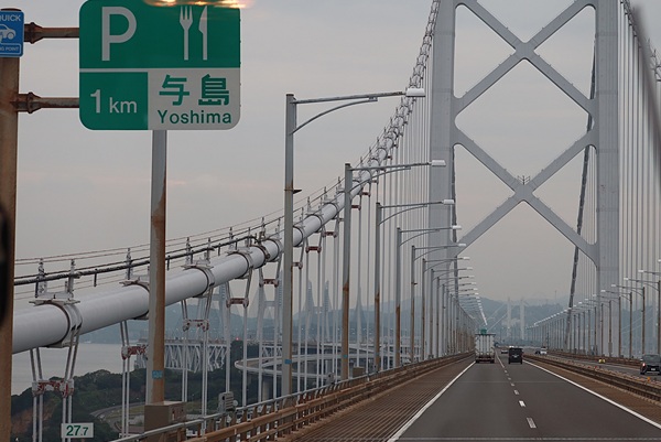 ![]() 瀬戸大橋 3本の吊り橋があり降りられるのは与島のみ |